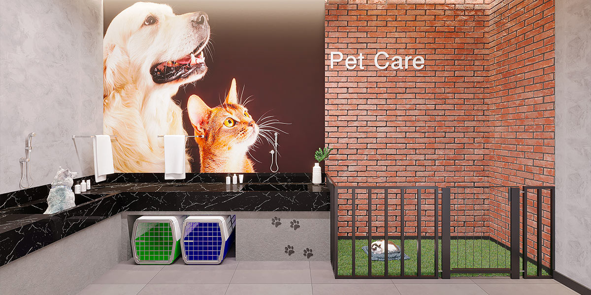 Espaços projetados especialmente para veterinários, com salas modernas e prontas para atender.